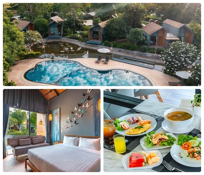 ห้องพักถูกตกแต่งด้วยโทนสีขาวที่สร้างความรู้สึกของความโปร่งแสงและสบายสบาย นอกจากนี้ยังมีสระว่ายน้ำที่ตั้งอยู่ริมธารน้ำ เพื่อให้คุณสามารถว่ายน้ำอย่างผ่อนคลายและเพลิดเพลินไปกับวิวทิวทัศน์ที่งดงาม นอกจากนี้ยังมีมุมเก๋ๆ ที่ทำให้คุณสามารถถ่ายรูปได้อย่างสนุกสนาน